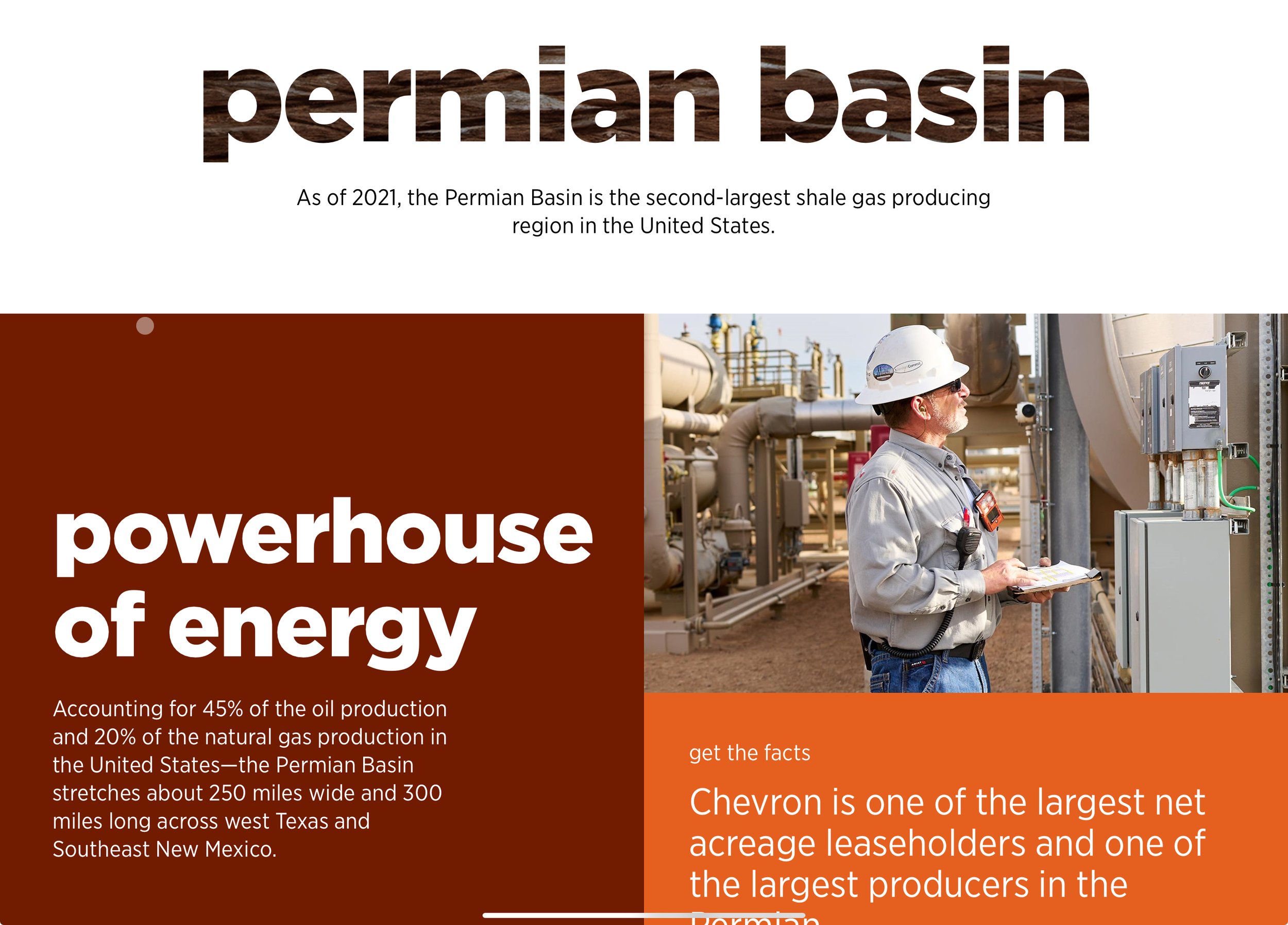 The Permian basin landing page presented a unique opportunity to transform dense technical content into an engaging digital narrative. I led the reimagining of this crucial asset page, shifting away from text-heavy, technical descriptions to a visual-first approach that tells the Permian story through interactive elements and clear, concise messaging. By improving the readability score and implementing a user-friendly information architecture, we created an intuitive journey that makes complex operational information accessible to various stakeholders, from investors to community members. The streamlined design maintains the technical depth our professional audience expects while presenting information in a more digestible, engaging format.